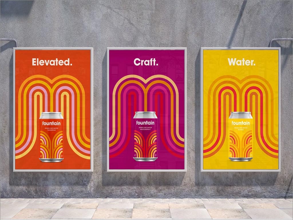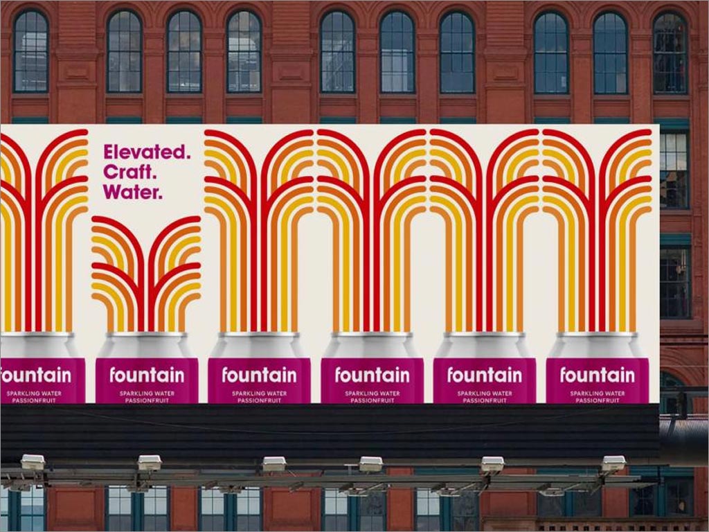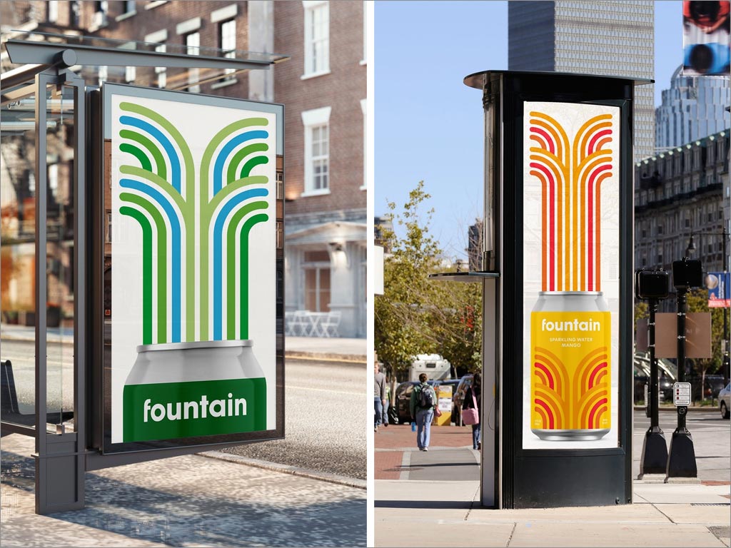 五角星設計公司作為Fountain品牌logo和包裝設計服務商,以幫助他們的品牌在一個已經很擁擠的空間中脫穎而出。五角星設計公司決定出奇制勝,將此款飲料定位在好玩、有趣、活力四射的角度,采用彩色的方法,以圓形和有機的線性圖案作為logo設計的基礎,該設計從包含蘇打水的天然成分以及品牌名稱中獲得靈感,創造了虛擬噴泉的形象,因為每個人都有打開易拉罐被噴灑的時候,就像他的品牌符號一樣,深入人心。