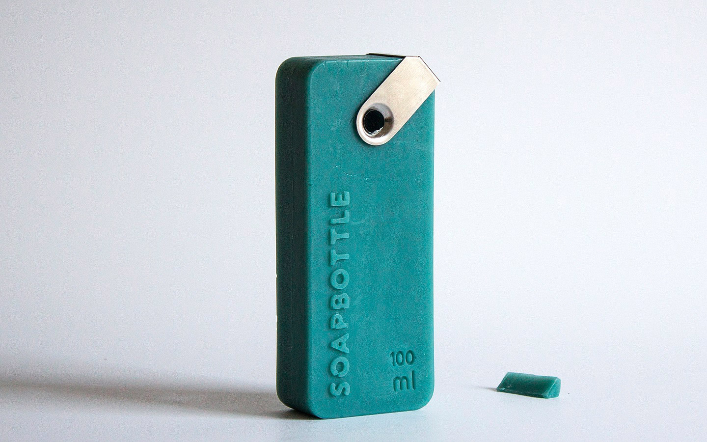 SOAPBOTTLE 在設計中加入了無包裝化妝品的概念,具體方式是將產品本身成為其自身的包裝。采用天然材料制作的香皂具有可生物降解的特性,因此可以完全避免垃圾產生。它外部的包裝由肥皂制成,隨著時間的推移會逐漸降解。與傳統的塑料容器不同,它不會留下任何廢物,也不會導致任何環境污染。每個瓶子的頂部都有一個孔可讓細繩穿過,從而提供了簡單且可重復使用的存儲方法。當液體用完后,剩下的部分還可以當作洗手香皂使用,或是再次加工成其它洗滌劑或清潔劑使用。
